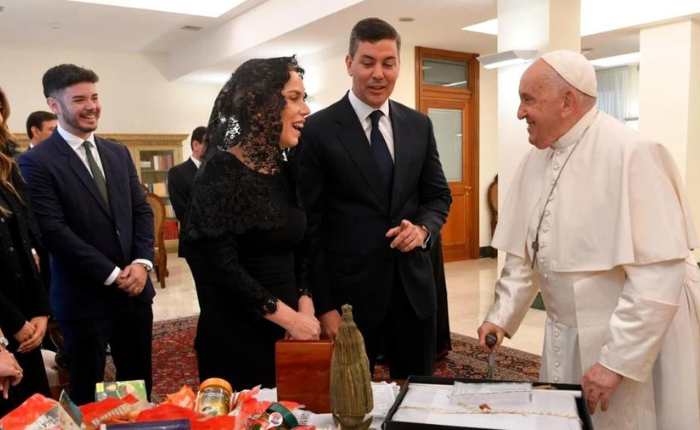 Explicó que “América Latina, a lo largo de los últimos 20 años, ha vivido una suerte de ideologización de las relaciones internacionales y cada país tiene su impronta, muchos han tenido movimientos pendulares de un extremo a otro” y eso “ha hecho mucho daño”. Peña asegura tener una mirada diferente, sin encasillar a ningún presidente, propone encontrar los puntos de coincidencia. En la conversación con el Papa, abordaron otros temas de “interés común”, como “la protección ambiental, la situación de los países de la región y el compromiso por la paz entre las naciones”. Tras la audiencia privada, el Santo Padre posteriormente recibió al resto de la delegación integrada por el presidente del Congreso, Silvio Ovelar, y al presidente de la Corte Suprema de Justicia, César Diesel; el canciller, Rubén Ramírez Lezcano; la primera dama, Leticia Ocampos; sus dos hijos y la nuera.