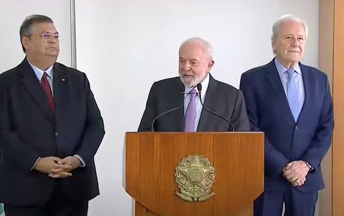 «Estou feliz porque estou diante de um companheiro que está prestando um serviço extraordinário ao país. Acertadamente, o Congresso Nacional homologou para que seja ministro da Suprema Corte. E estou feliz porque tenho ao meu lado esquerdo um companheiro que foi um extraordinário ministro do STF e vai ocupar a cadeira do Flávio Dino na Justiça», afirmou Lula.