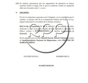 También precisa que no se aprecia que la parte demandante haya siquiera alegado o demostrado que Evo Morales no es responsable de las acciones que se le imputan mediante el Servicio de Inteligencia de nuestro país y agrega que la situación jurídica y libertad del exmandatario boliviano se encuentra sin ninguna afectación ya que radica en Bolivia y en la actualidad no ha mostrado ni siquiera algún indicio o intento de querer ingresar al Perú.