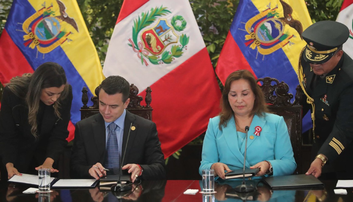 Noboa reconoció que gran parte de su lucha contra el crimen organizado ha contado con la cooperación de las fuerzas del orden peruanas, por lo que invitó a su homóloga a seguir haciendo frente «a las amenazas comunes».