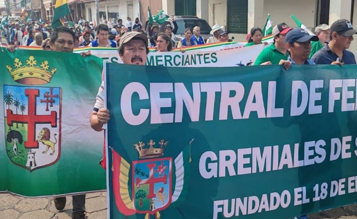 En la capital cruceña, las 10:00, partió la denominada marcha multisectorial desde el Cementerio general rumbo a la plaza 24 de septiembre donde se realizaron protestas afuera del edificio de Impuestos Nacionales. Al finalizar la marcha, se realizó una concentración en el centro cruceño.