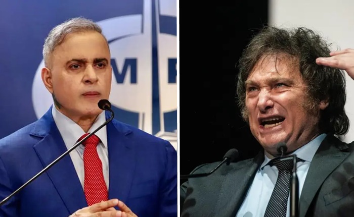 “Este Ministerio Público de la República Bolivariana de Venezuela anuncia la asignación de dos fiscales especializados en la materia, quienes adelantan la diligencia pertinente del caso y se encuentran tramitando la orden de aprehensión contra los siguientes ciudadanos: Javier Milei, Presidente de la República Argentina, Karina Milei secretaria general de la Presidencia de la Nación Argentina y Patricia Bullrich, ministra de Seguridad de la Nación”, pronunció Saab.