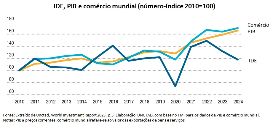 El Instituto de Estudios para el Desarrollo Industrial (IEDI) analizó la última encuesta de la UNCTAD, divulgada recientemente, sobre la IED en el mundo, que trajo datos de 2024, con énfasis en la posición de Brasil.
