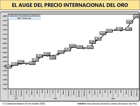 Lamentablemente la creciente minería informal e ilegal sobre todo explicada por los altos precios del oro que en la semana que termina llegaron a los US $ 3,888 dólares la onza con tendencia creciente para superar los US $ 4,000 en diciembre próximo, según las proyecciones de bancos de inversión y consultoras de prestigio.