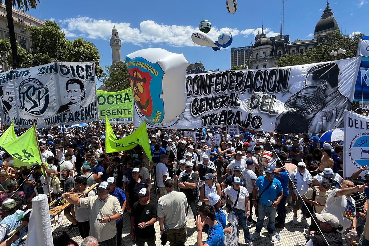 La convocatoria de la CGT y las dos CTA construyeron una masiva protesta para rechazar en la calle la reforma laboral del Gobierno. Inicio de plan de lucha y posible convocatoria a un paro nacional. Organizaciones denuciaron que la Gendarmería impidió la llegada de los manifestantes a la concentración.