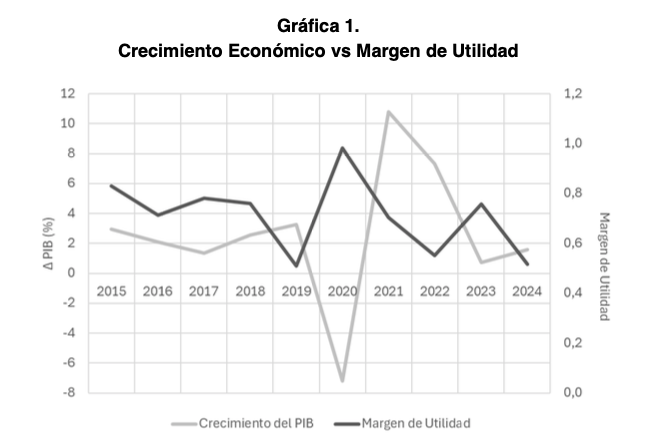 - El margen de utilidad aproxima por la relación entre ingresos y costos operacionales de las empresas activas que desde 2015 tienen su información en el Sistema Integrado de Información Societaria -SIIS- de la Superintendencia de Sociedades. Esta relación se pondera por el tamaño de los activos de las empresas para tener un dato general. La información contable aquí es comparable ya que desde 2015 las empresas adoptaron el estándar contable NIIF. Las actividades económicas con mayor margen de utilidad en el país son: sector inmobiliario, sector educación, servicios de intermediación financiera, sector de comunicaciones e infraestructura digital, y el sector transporte y de almacenamiento.
