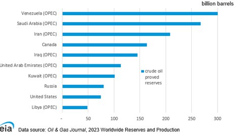Figura 1: Ranking de reservas de petróleo probadas año 2023. Fuente: eia (2023).