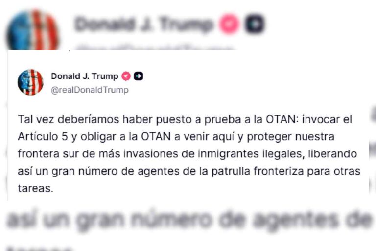 A través de su red social Truth Social, el mandatario argumentó que podría invocar el artículo 5 de la organización para que sus fuerzas acudieran a la frontera sur de EU y dedicar a los elementos fronterizos a otras tareas.