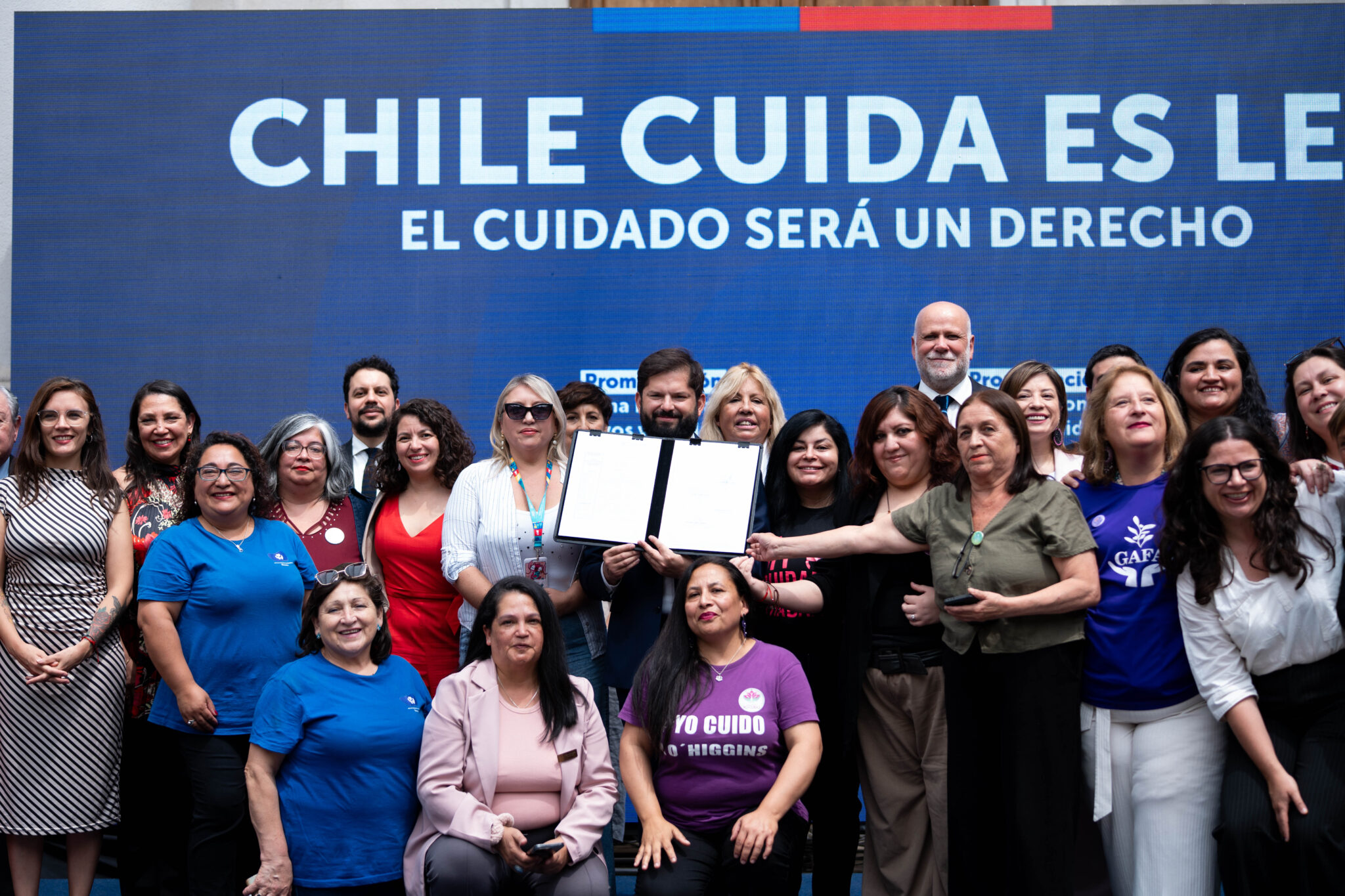 La Ley Chile Cuida consagra por primera vez al cuidado como un derecho social, completando un pilar de protección social que incluye previsión social, salud y educación, entre otras asistencias a las personas cuidadora. “Los cuidados sostienen la economía y la vida de nuestra patria. Ahora viene la implementación y la generación de conciencia de lo que significa el cuidado, señalò: Gabriel Boric. “Al promulgar la ley de Chile Cuida, quiero reconocer a todas las personas, principalmente mujeres, que cuidan en el país, que están en todas partes, que muchas veces no se ven, pero ahí están y nos sostienen”, afirmó Boric el 9 de febrero.