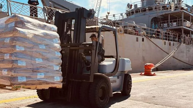 El buque Papaloapan trasladó 536 toneladas compuestas por alimentos esenciales como aceite vegetal, arroz, frijol, carnes y productos de higiene. Por su parte, el Isla Holbox completó la carga con más de 277 toneladas de leche en polvo.