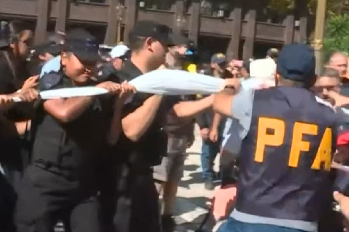 Unos minutos antes del mediodía, la Policía Federal se lanzó sobre los manifestantes que intentaban montar una carpa, con empujones que terminaron con una persona herida en la cabeza.