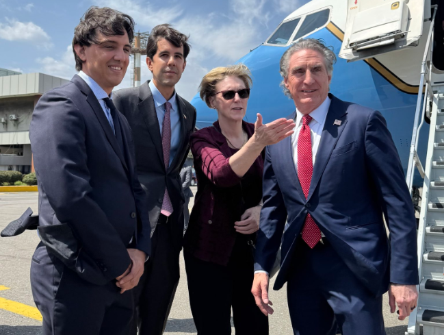 Como se había adelantado la mañana de este miércoles, 4 de marzo, Doug Burgum, secretario del Interior de Estados Unidos, llegó antes del mediodía a Venezuela, según lo confirmó la Embajada estadounidense en Caracas, al compartir una foto del momento del recibimiento del alto funcionario..