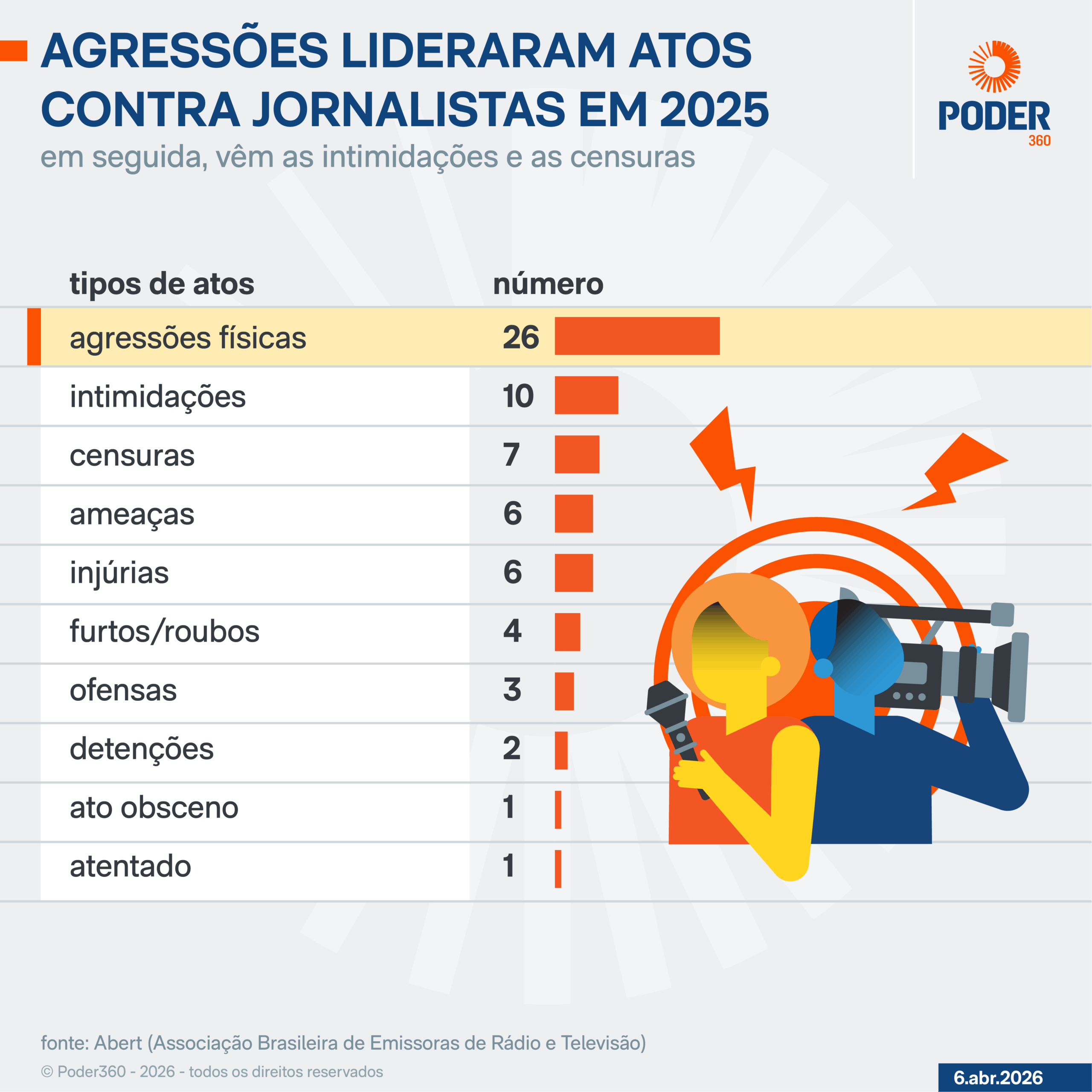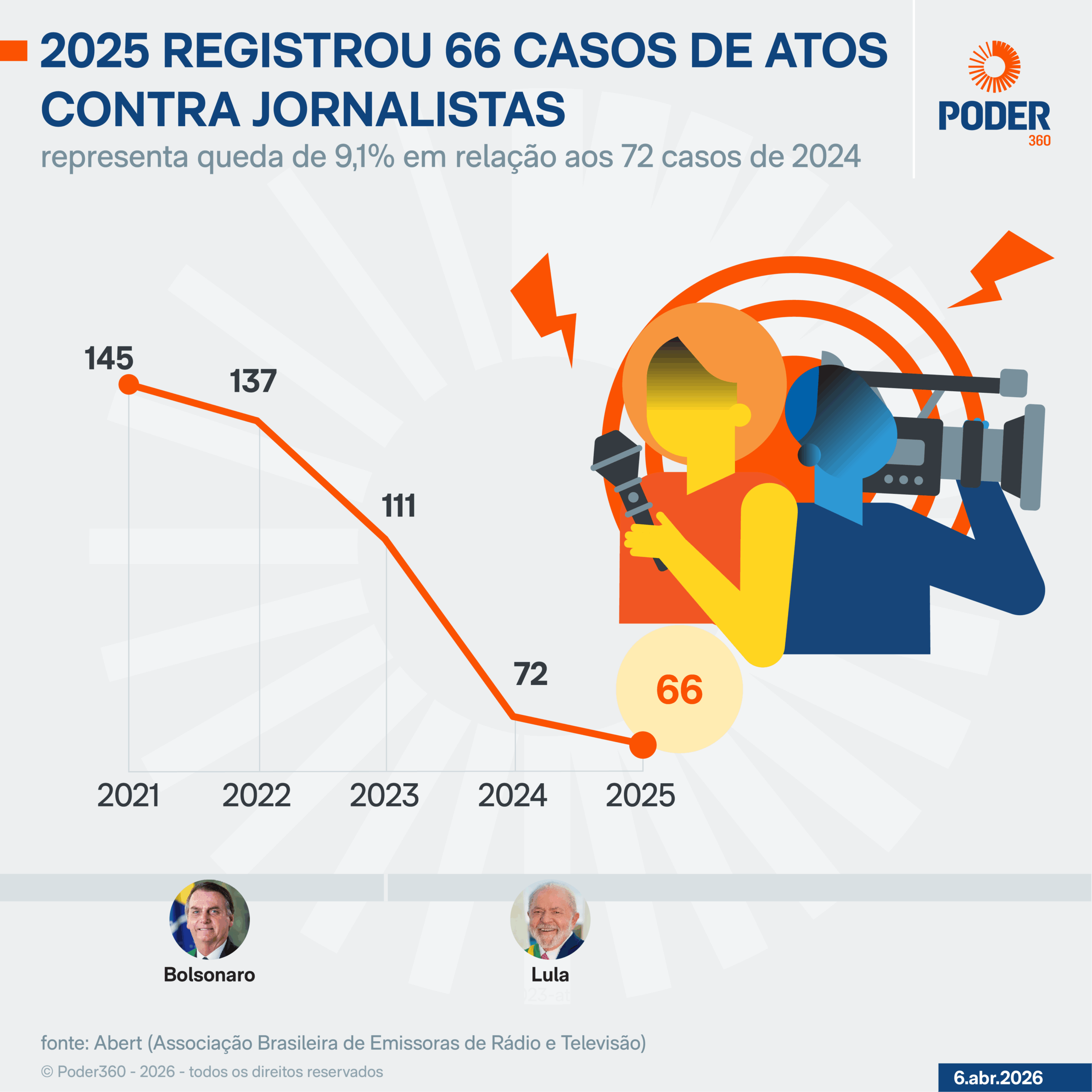 Segundo o Relatório sobre Violações à Liberdade de Expressão, da Associação Brasileira de Emissoras de Rádio e Televisão, em 2025 houve queda de 9,1% nos casos contra jornalistas em relação a 2024. O número passou de 72 para 66 registros.