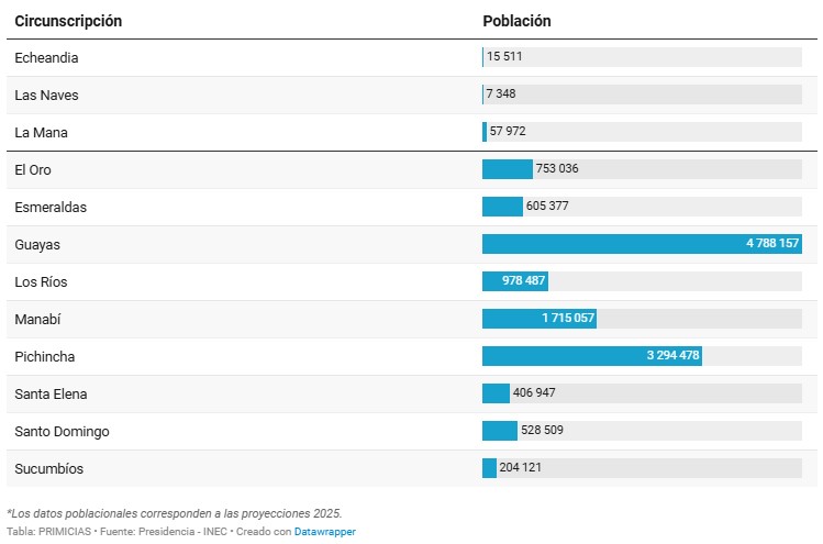 Los últimos cinco estados de excepción, desde el 5 de octubre de 2025, han incluido siempre a Guayas, El Oro, Los Ríos, Manabí y el cantón Echeandía, en Bolívar.