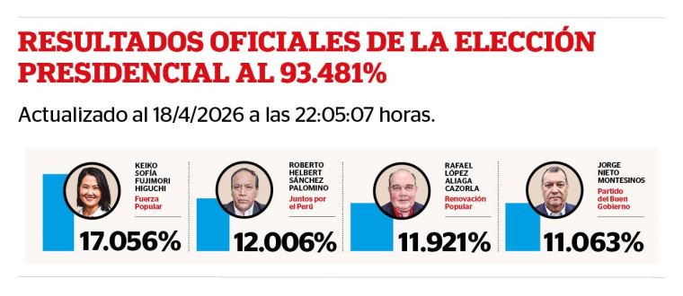 La secretaria general del Jurado Nacional de Elecciones (JNE), Yessica Clavijo, estimó que los resultados de las elecciones presidenciales 2026 se tendrían hacia la quincena del próximo mes, tras lo cual se determinará qué candidatos pasarán a la segunda vuelta prevista para junio.